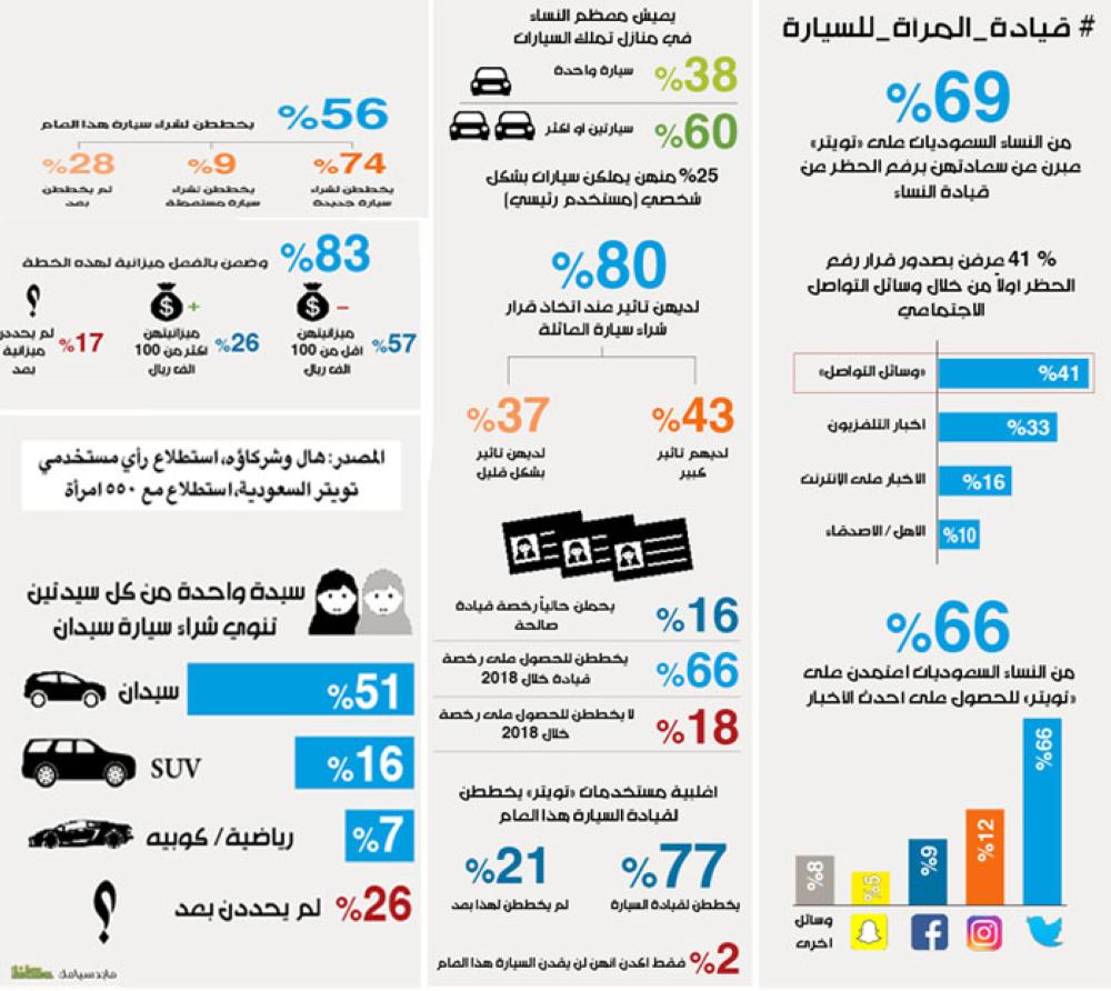- %66 من النساء اعتمدن على «تويتر» للحصول على أحدث الأخبار حول رفع الحظر.