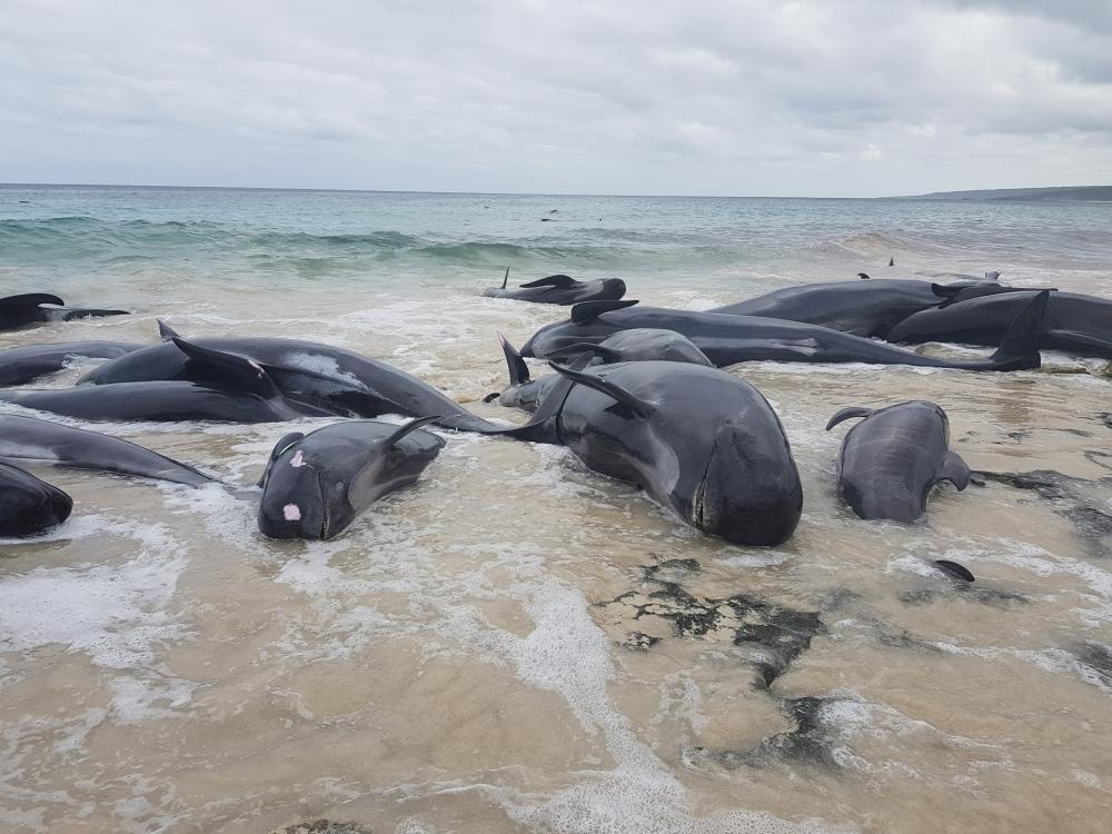وسبق أن جنح عدد قياسي من الحيتان الطيارة طويلة الزعانف في عام 1996، عندما تقطعت السبل بعدد 320 حوتا من النوع الطيار طويل الزعنفة في شمال خليج هاملن ونفقت.