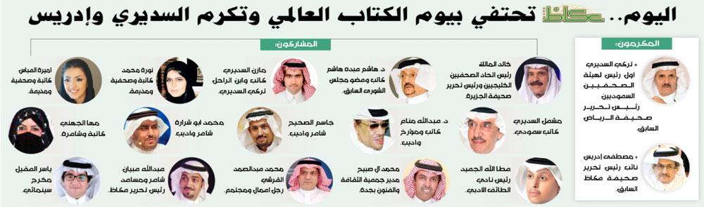 اليوم.. عكاظ تحتفي بيوم الكتاب العالمي وتكرم السديري وإدريس