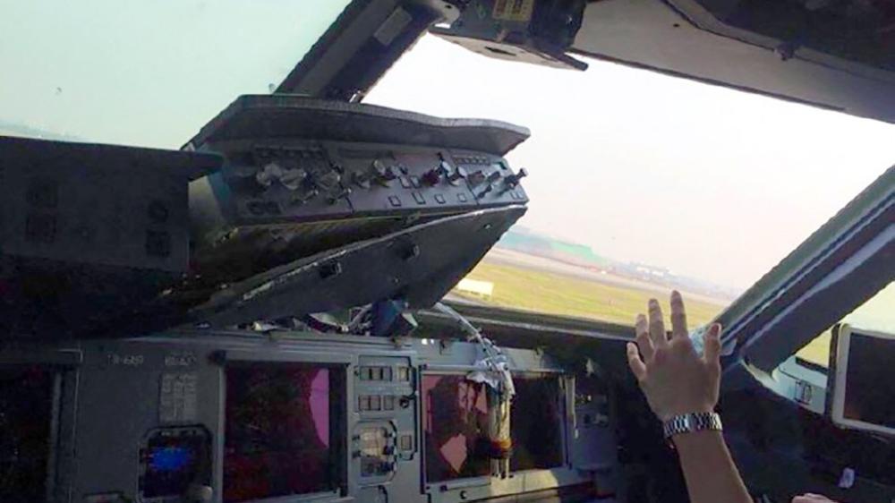 ونشرت صحيفة «تشنغدو إكونوميك ديلي» التابعة للحكومة صورا للطائرة دون إحدى نوافذ قمرة القيادة كما بدت أضرار في أجهزة التحكم في قمرة القيادة.
