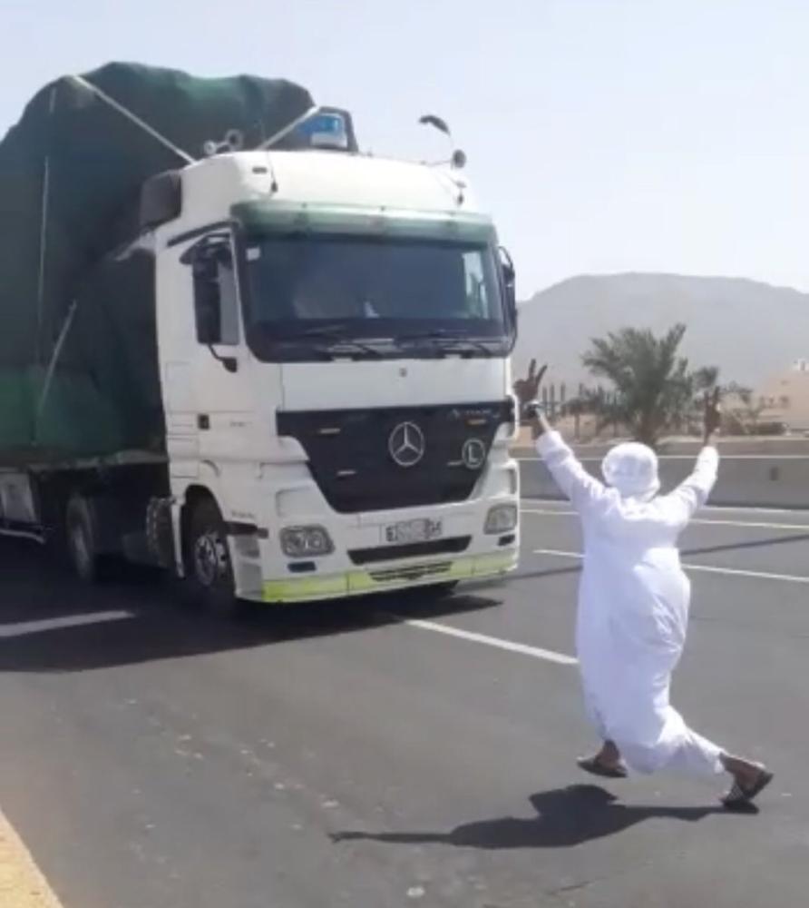 يذكر أن مواقع التواصل الإجتماعي تداولت مقطع لمستهتر يقوم باعتراض شاحنة تسير بسرعة عالية، ما تسبب في إرباك قائدها دون أن يتسبب ذلك في وقوع أي حوادث.