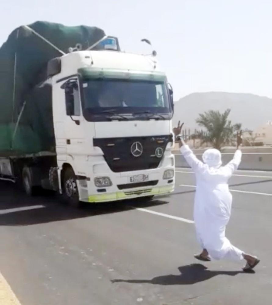 يذكر أن مواقع التواصل الاجتماعي تداولت مقطعا لمستهتر يقوم باعتراض شاحنة تسير بسرعة عالية، ما تسبب في إرباك قائدها دون أن يتسبب ذلك في وقوع أي حوادث.