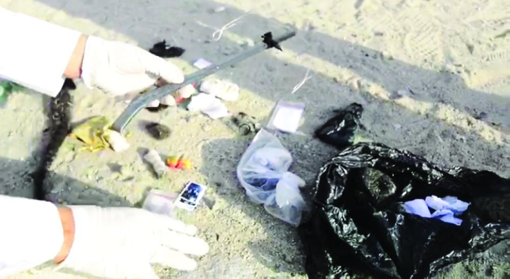 بعض المضبوطات بعد استخراجها من بين الصخور.