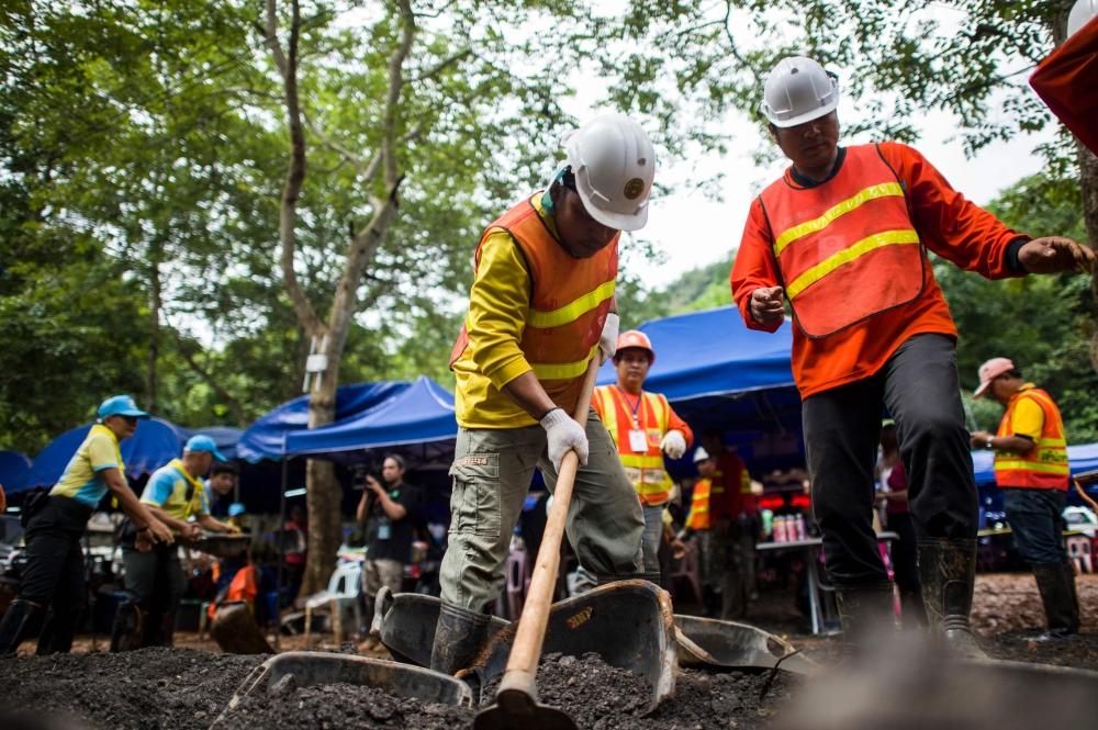 وأدخل عمال الإنقاذ طعاما ومياها ومسعفين بينما كانوا يشفطون المياه من الأنفاق في محاولة لخفض منسوبها لتسهيل عملية الإنقاذ.