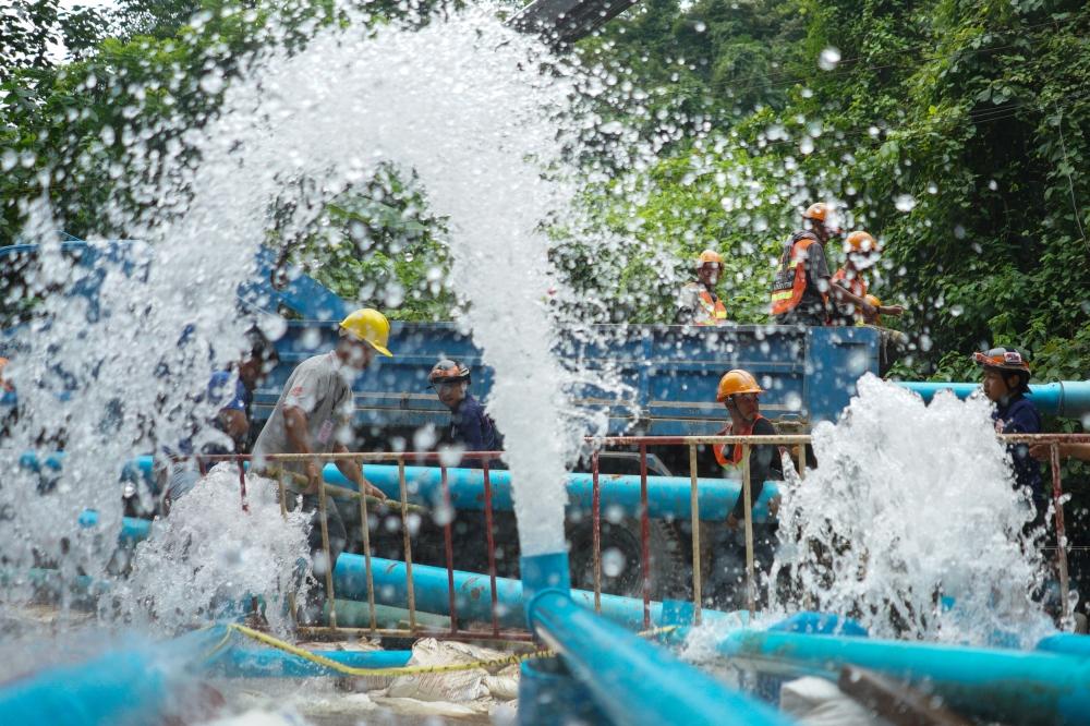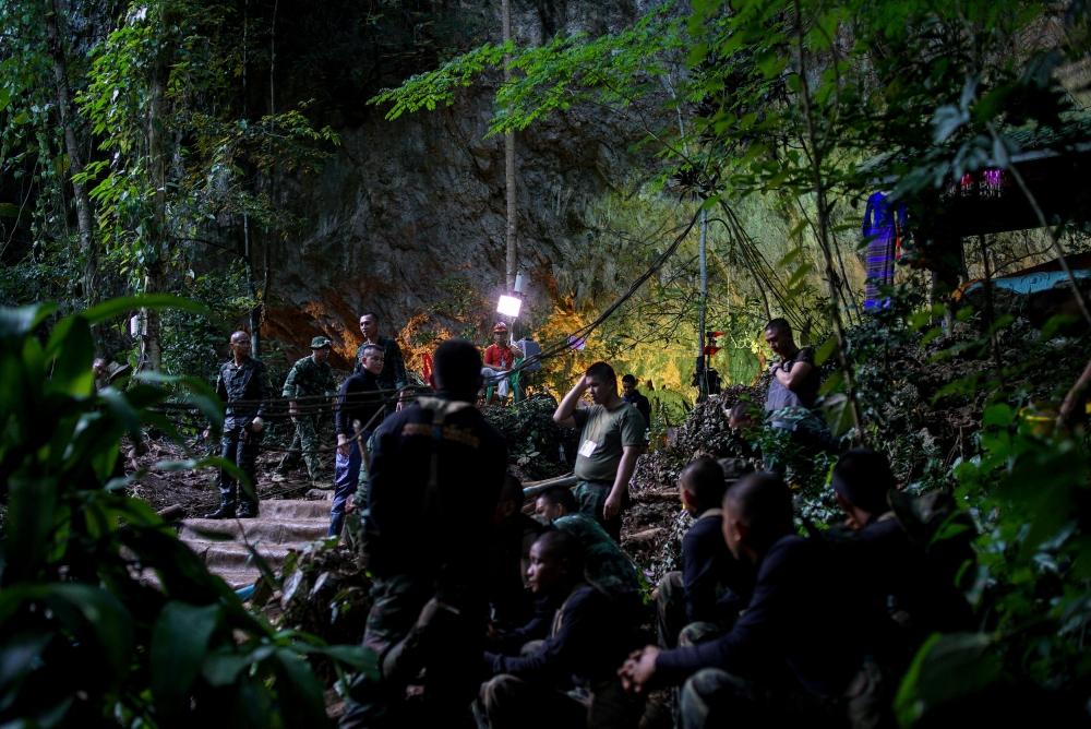 وبدأ فريق يضم وحدة القوات الخاصة بالبحرية التايلاندية والشرطة ومتطوعين العمل دون هوادة لتجفيف الكهف منذ تحديد مكان المجموعة يوم الاثنين.