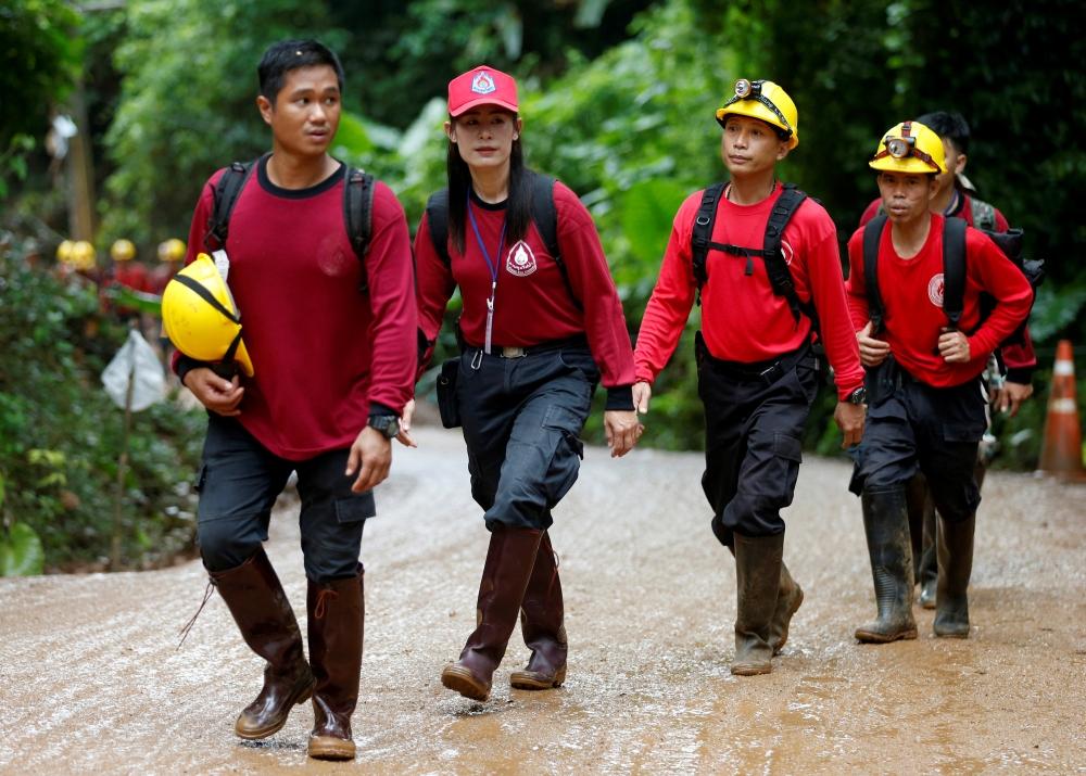 ويتألف فريق الإنقاذ الرئيسي من 13 غواصا أجنبيا وخمسة من أفراد القوات الخاصة التابعة للبحرية التايلندية ويحاولون إخراج الفتية عبر ممرات ضيقة مغمورة بالمياه في مهمة أودت بحياة غواص سابق بالبحرية التايلندية يوم الجمعة.