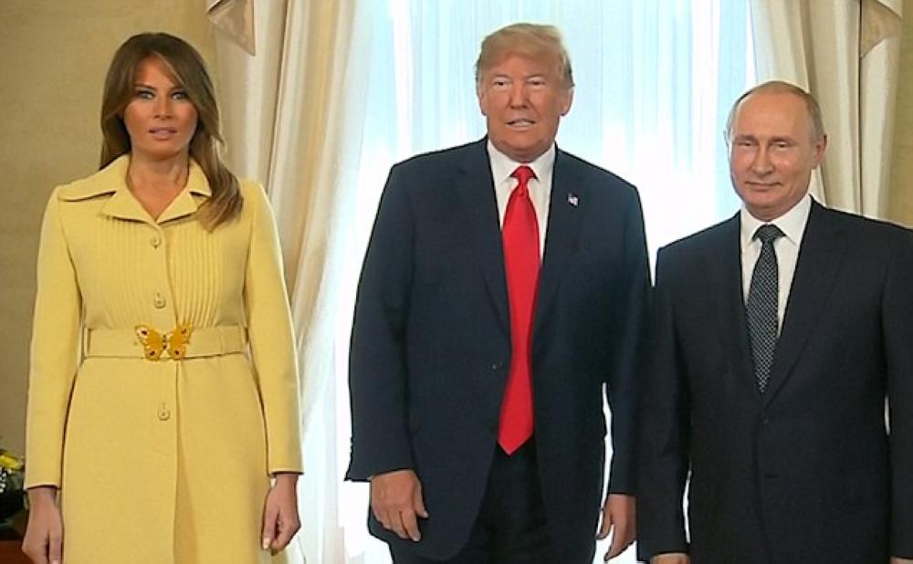 وخلال «قمة هلسنكي» بين ترمب وبوتين، رصدت الكاميرات ميلانيا في استقبال بوتين، حيث ظهر الرئيسين مبتسمين، أما ميلانيا كانت في وضع غير اعتيادي، بعد مصافحة بوتين، وبدت «مرتبكة وغير مرتاحة» وكأنها تخفي شيئاً، بحسب ما نشرته صحيفة «الديلي ميل» البريطانية.