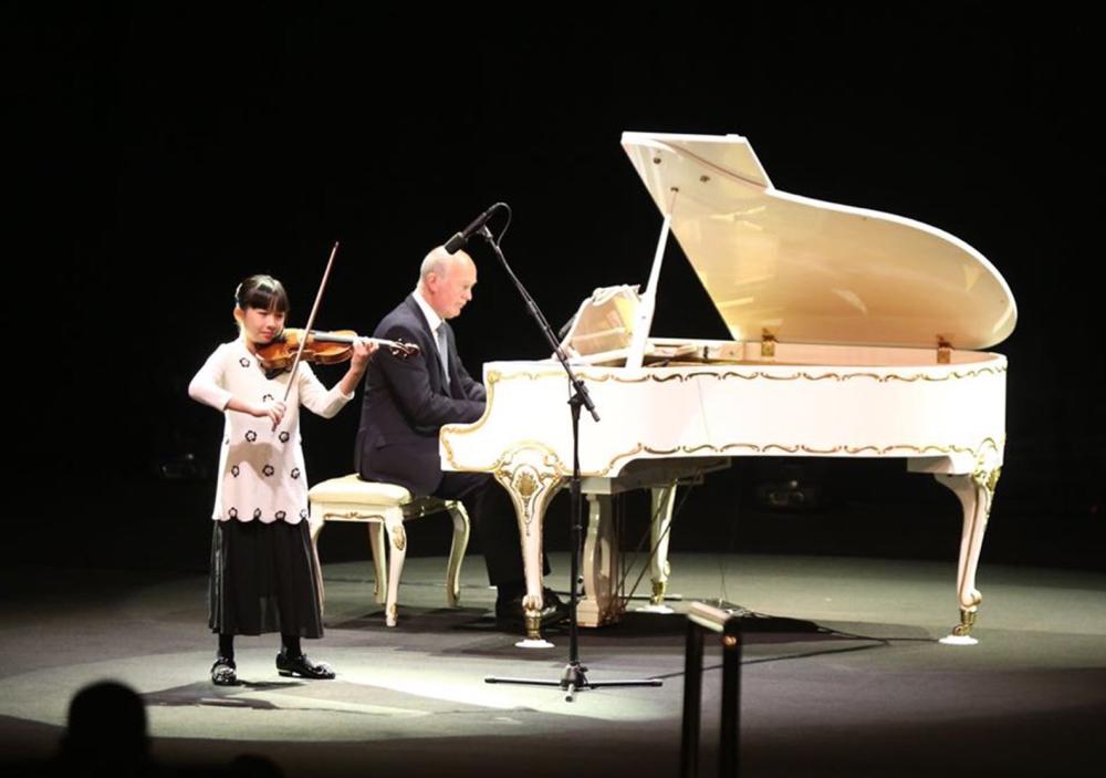 ورافق العازفة الرئيس الفني لمسابقة مينوهن «جوردن باك» في عرض موسيقي على البيانو حيث يعتبر «جوردن» مشاركاً أساسياً في مسابقات دولية كبيرة لعزف الكمان، وفي حديثه لـ«عكاظ» أشاد جوردن بالتجربة الفريدة للحفلة الموسيقية في العاصمة الرياض بمشاركة جميع شرائح المجتمع السعودي من رجال ونساء وأطفال، قائلا «الجمهور كان رائعا والحضور أثبت تقدير السعوديين للموسيقى».