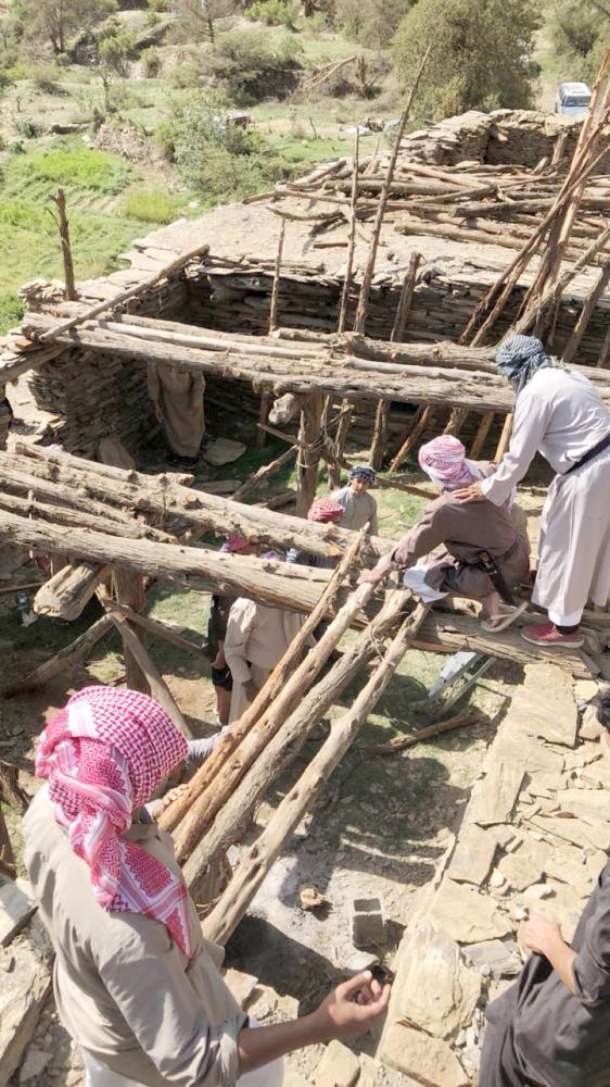 يواصل أهالي قرية «عويرة» في منطقة الباحة مبادراتهم لإعادة إحياء التفاصيل القديمة والعناية بموروثهم التاريخي، وذلك عبر يوم الموروث الذي اختاروه في كل عام ليقدموا خلاله مبادرة تهتم بإعادة بناء منازل قريتهم الحجرية أو إحياء أي من عاداتهم السابقة، فبعد أن عاشوا العام الماضي يوماً كاملاً على الطريقة القديمة دون استخدام وسائل التقنية الحديثة، قاموا هذا العام بتسقيف البيوت التي أصاب العطب أسقفها.