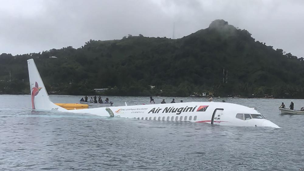 وأخفقت طائرة البوينغ 737 التابعة لشركة الطيران نيوجيني في الهبوط على مدرج مطار وينو وسقطت في الماء حيث بدأت تغرق.