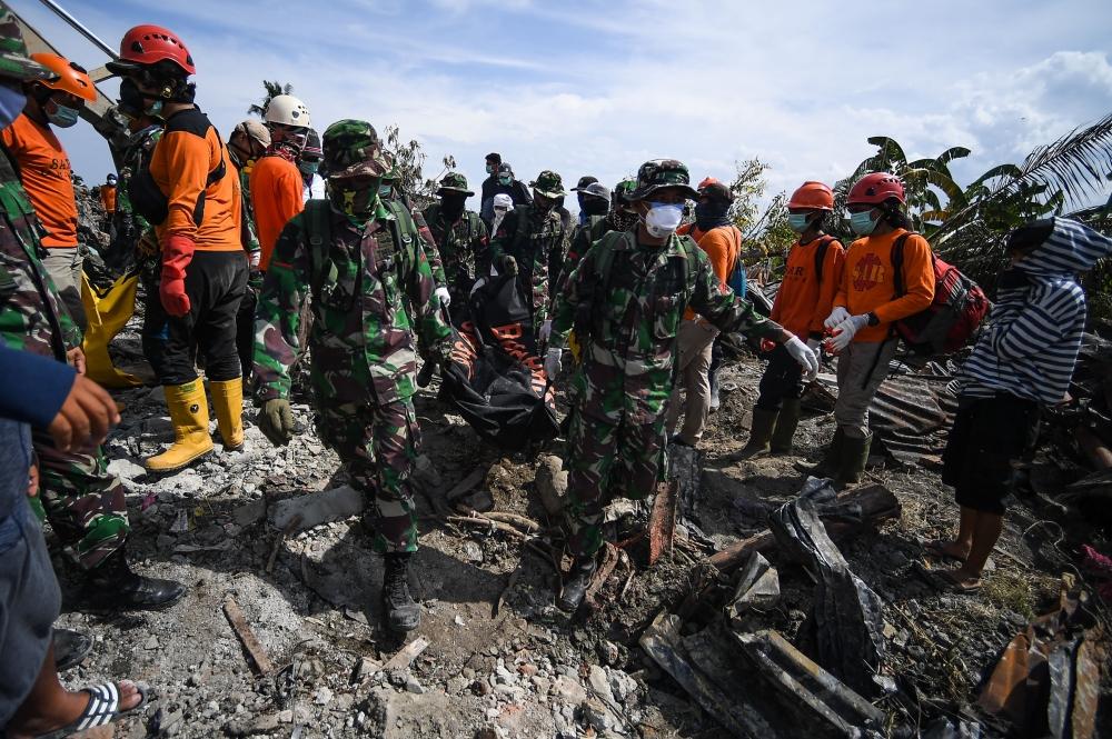 وقال المتحدث باسم وكالة الكوارث الإندونيسية يوسف لطيف لوكالة «فرانس برس»: «معظم الجثث التي عثرنا عليها أشلاء وهذا يمثل خطرا بالنسبة للمسعفين. يجب أن نكون حذرين جدا لتجنب التلوث».