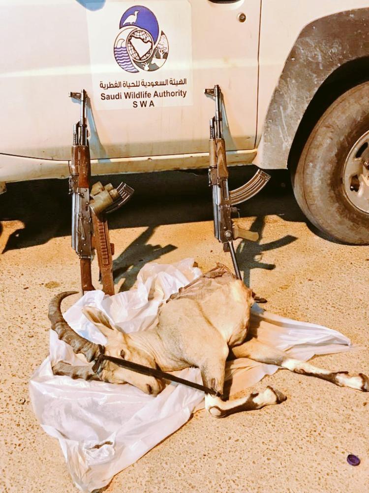 وأعلنت الهيئة عبر حسابها الرسمي في «تويتر» أن أفراد قوة حماية المناطق المحمية التابعين للهيئة تمكنوا بالتعاون مع الجهات الأمنية من القبض على شخصين قاما بالتسلل للمحمية واصطياد وعل بسلاح ناري وتم اتخاذ اللازم وتسليمهما والمضبوطات للجهات المختصة لتطبيق النظام بحقهم.