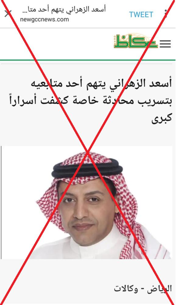 «عكاظ» تنفي علاقتها بخبر «أسعد الزهراني يتهم أحد متابعيه بتسريب محادثة خاصة كشفت أسراراً كبرى».. وتعد باتخاذ الإجراءات القانونية