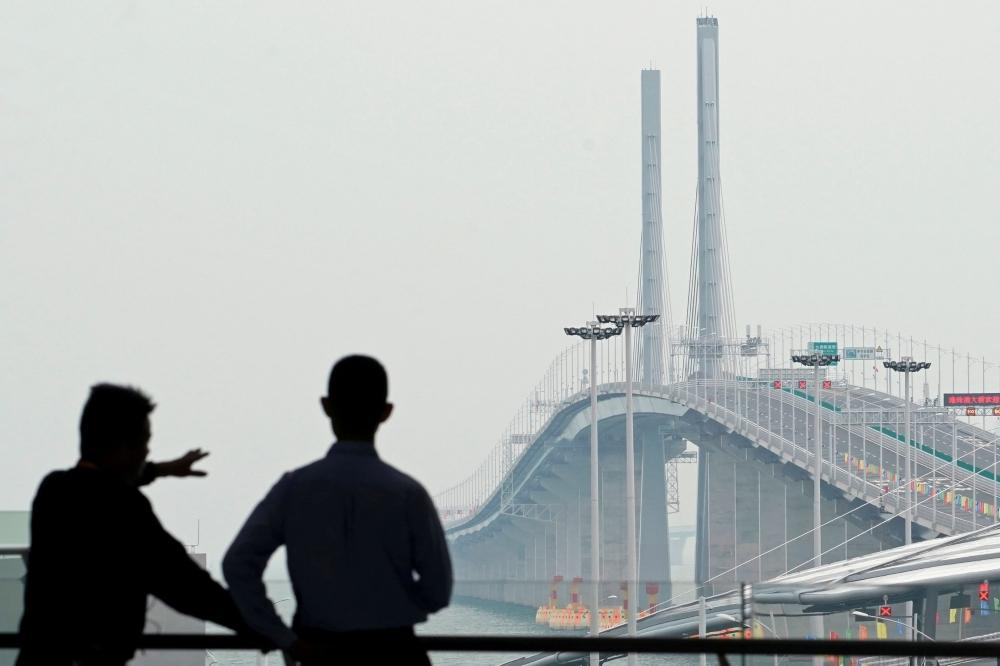 ويعد هذا المشروع الضخم الذي يربط هونغ كونغ بالبر الصيني الثاني من نوعه، بعد افتتاح خط سكة حديد للقطارات السريعة الشهر الماضي، وهو جزء من استراتيجية بكين لتشكيل منطقة اقتصادية كبرى.