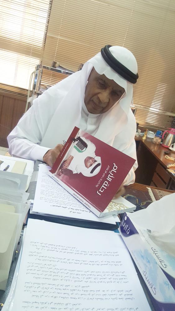 د. الصبيحي يوقع إهداء لـ عكاظ على نسخة من كتابه الجديد.