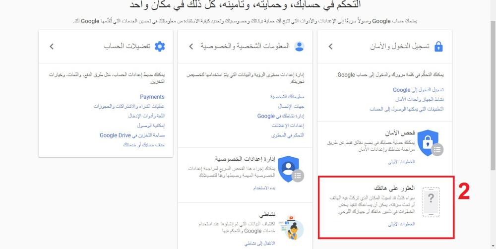 فإذا كان هاتفك يعمل بنظام أندرويد فمن الطبيعي أن تمتلك بريدا على جيميل مرتبط بحساب الهاتف لاستخدامه في تنزيل البرامج، وفي حال فقدان هاتفك عليك الدخول على حسابك في جيميل واختيار حساب قوقل من الخيارات لتظهر لك قائمة تختار منها «العثور على هاتفك».