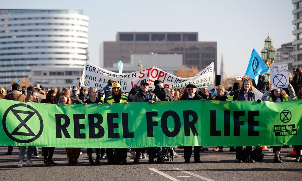 قطع مئات الأشخاص بضع جسور في لندن اليوم (السبت) تعبيرا عن احتجاجهم على ما وصفوه بـ «العجز الإجرامي» للحكومة في تعاطيها مع مشكلة التغير المناخي.