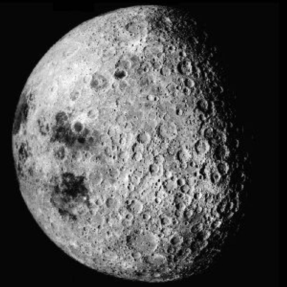 ويواجه القمر الأرض بجانب واحد حيث يدور حول نفسه بنفس السرعة التي يدور بها حول الأرض، ولذلك فإن الجانب البعيد أو الجانب المظلم لا يمكن رؤيته مطلقا من الأرض. وشاهدت مركبات الفضاء السابقة الجانب البعيد من القمر ولكن لم تهبط عليه أي مركبة على الإطلاق.