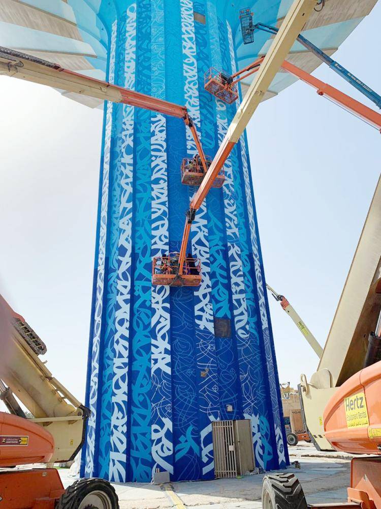 في بادرة تطوعية، شاركت 14 طالبة من معهد «رافلز» للتصميم الفنان الفرنسي - التونسي «إل سيد» في إنهاء جداريته على خزان مياه الرياض، أثناء تدشين وزارة الثقافة لإستراتيجيتها باحتفالية كبرى في «حديقة الوطن»، يتوسطها الخزان، أحد أهم معالم العاصمة.