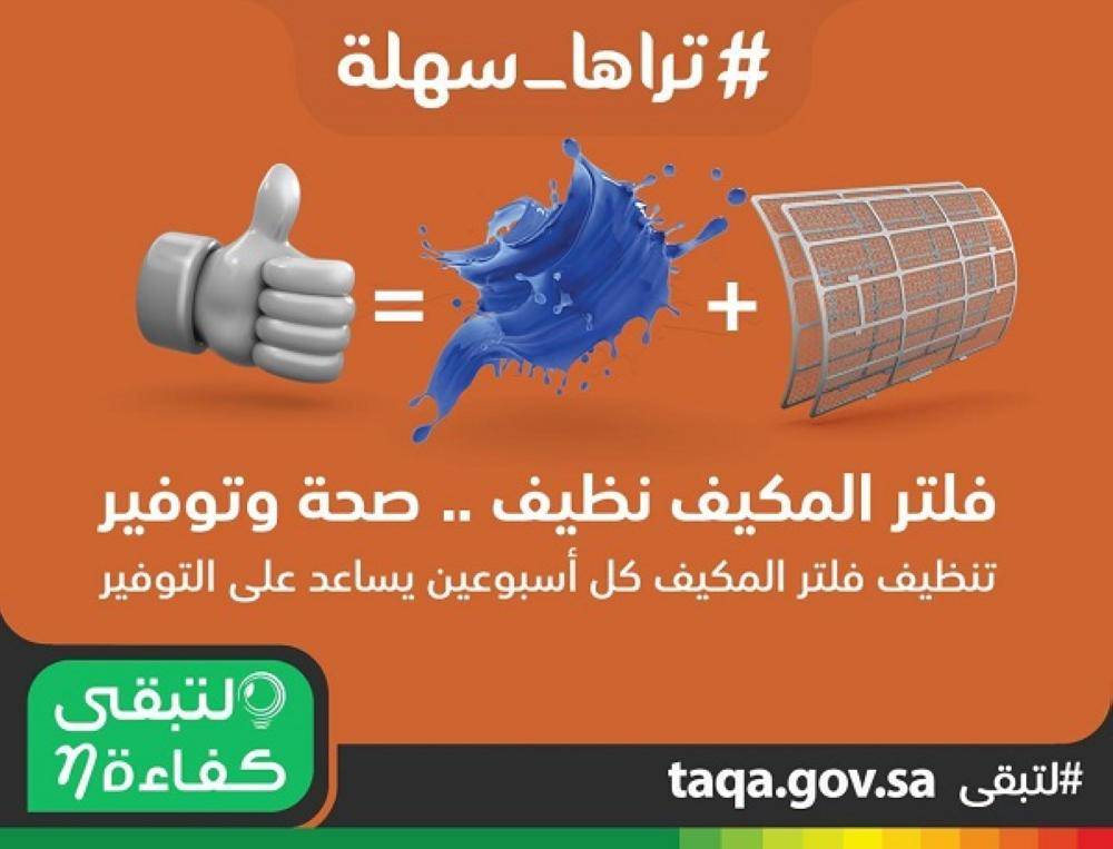 أكد القائمون على البرنامج السعودي لكفاءة الطاقة من خلال حملة «تراها سهلة»، أن تنظيف الفلتر مره كل أسبوعين يُساهم في التخفيف من كمية استهلاك المكيفات الكهربائية.
