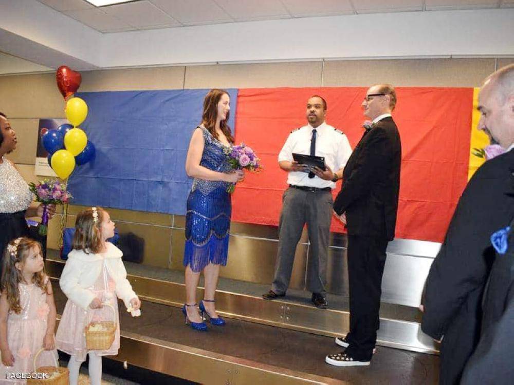 تزوجا في صالة عفش المطار.. لسبب غريب