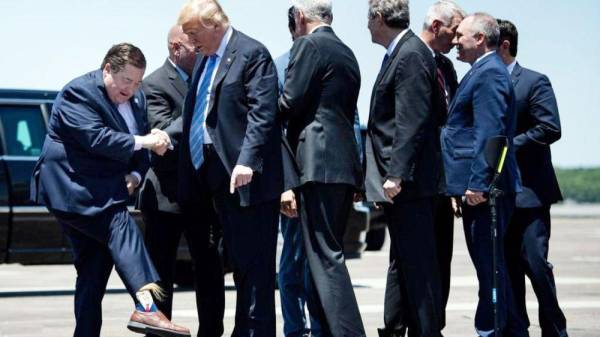مرتديا «جوارب ترمب».. حاكم لويزيانا يستقبل الرئيس