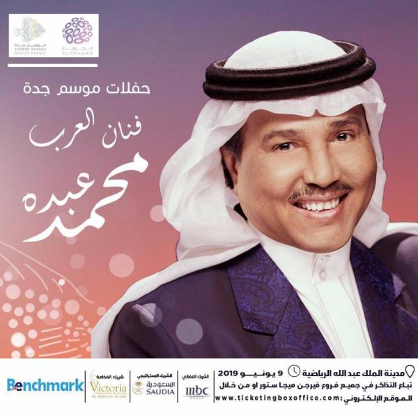 يحيي فنان العرب محمد عبده حفلا جماهيريا بالمدينة الرياضية «الجوهرة» في جدة يوم (الأحد) ٩ يونيو، ضمن سلسلة حفلات «موسم جدة» هذا العيد.