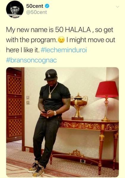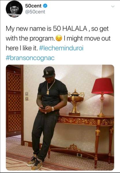 وفي صورة أخرى، أشار فيفتي سنت إلى أنه «أمضى وقتاً رائعاً»، خلال موسم جدة في السعودية، كما قال في تعليق نشره مع صورة أخرى إن اسمه الجديد هو «50 هللة»، مضيفاً: «من الممكن أن أنتقل إلى هنا فأنا أحببت المكان».
