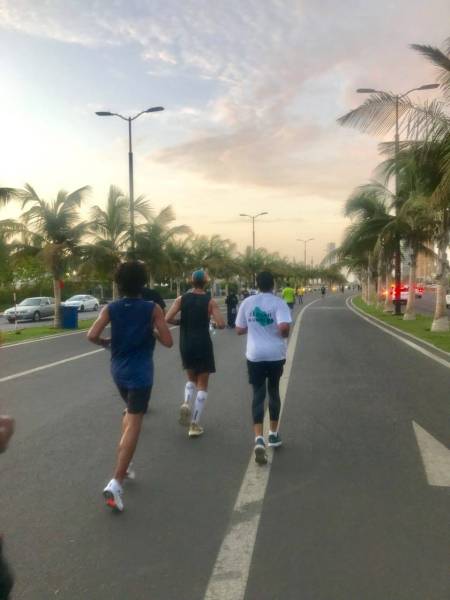 وانطلق الجميع من كورينش جدة بالقرب من فندق هيلتون، وتم قطع أكثر من 40 كيلومتراً، ثم العودة مرة أخرى، واستمر برنامج الركض من الساعة السادسة مساءً وحتى منتصف الليل.