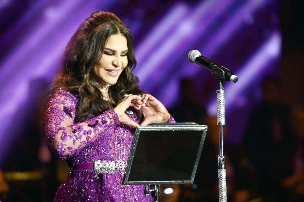 أحلام تتفاعل مع جمهورها في الحفلة.