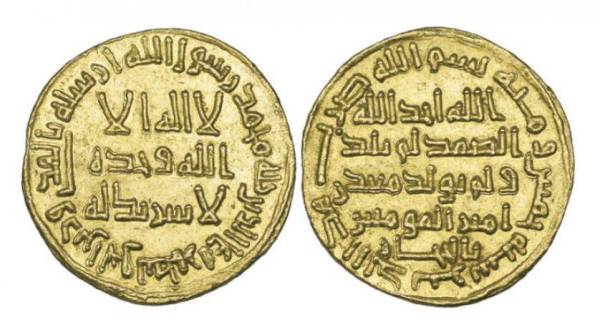 من المقرر عرض دينار ذهبي يعود لعصر الدولة الأموية عام 105 هـ، 723م للبيع في مزاد علني تُقيمه دار «مورتون أند إيدن» بالعاصمة البريطانية لندن بتاريخ 24 أكتوبر القادم. ومن المتوقع أن يُحقق الدينار الذهبي النادر الذي يبلغ قطره 20 ميلليمتراً سعر 1.4 مليون جنيه إسترليني. ويرجع السبب في ارتفاع سعر الدينار إلى أنه يحمل سطراً قصيراً يقول إنه صنع من «معادن أمير المؤمنين»، بمعنى أنه صُنع من الذهب المستخرج من منجم ذهب يقع بمنطقة كان يمتلكها أمير المؤمنين. وما يزيد من قيمة الدينار الذهبي هو أنه يحمل كلمة «بالحجاز»، وهو المكان الذي يقع فيه منجم الذهب.