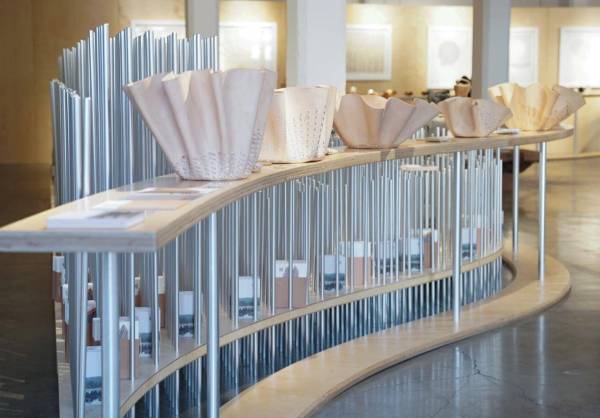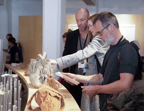 التلّي الإماراتي والجلد الإسبانيّوترتكز مجموعة الأواني التي يقدمها المصمم الإسباني أدريان سلفادور كانديلا والمصممة الإماراتية شيخة بن ظاهر، على الميزات الطبيعية للجلد، إذ يمكن التحكّم بالجلد بسهولة ومرونة عند تبليله بالماء. وتمزج هذه الأواني الجلد الطبيعي ومنسوجات التلّي لتعرض حواراً بين حرفتين وثقافتين.