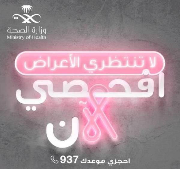 بدأت الصحة اليوم (الثلاثاء)، تنفيذ حملة وطنية للكشف المبكر عن سرطان الثدي الذي يُعد«أكثر أنواع السرطان شيوعاً لدى النساء بالمملكة»، حيث تتزامن الحملة مع فعاليات الشهر العالمي للتوعية بسرطان الثدي «الشهر الوردي» الذي يقام في شهر أكتوبر من كل عام.