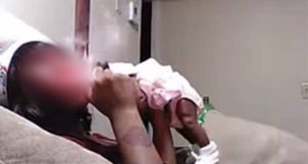 بثت سيدة أمريكية عبر صفحتها على «فيسبوك» مقطع فيديو مباشراً، تظهر فيه وهي تدخّن في وجه ابنتها البالغة من العمر شهراً واحداً، وترفعها باليد الأخرى بوضعية خطيرة.