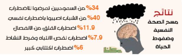 كشفت نتائج المسح الوطني للصحة النفسية وضغوط الحياة في السعودية أن 34% من الجنسين تعرضوا لأحد الاضطرابات النفسية، فيما أصيب 40% من الشباب باضطرابات في مرحلة من حياتهم. وأكد تجمع علمي طبي وأكاديمي بمستشفى الملك فيصل التخصصي ومركز الأبحاث بالرياض بالتعاون مع مركز الملك سلمان لأبحاث الإعاقة أمس، أن النتائج تقارب المعدلات العالمية. ووفق الدراسة انتشر اكتئاب النساء بنسبة 8.9% ليسجل أكثر من ضعفي نسبة الرجال البالغة 3.1%، بينما بلغ معدل انتشار اضطراب ثنائي القطب لدى الرجال (4%) فيما بلغ للنساء (2,7%). وبينت الدراسة على مدى 3 سنوات أن أكثر الحالات النفسية انتشارا في المملكة تعود لاضطراب القلق من الانفصال بنسبة 11,9 %، فيما يأتي اضطراب نقص الانتباه وفرط النشاط ثانيا، بنسبة 7,9% ، ثم اضطراب اكتئابي كبير ثالثا بنسبة 6%. واستهدفت الدراسة 4004 رجال وامرأة ما بين 65-15 سنة من شتى أنحاء المملكة باستخدام أداة المسح (CIDI 3.0 ).