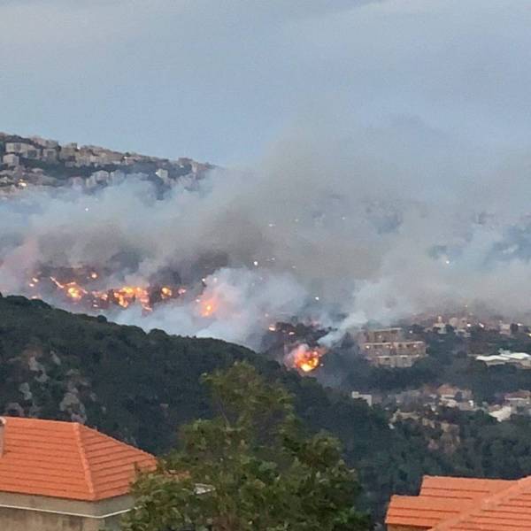 اندلعت ليلة أمس (الاثنين) سلسلة حرائق بمناطق عدة في لبنان، بسبب موجة الحر التي ضربت البلاد في الساعات الماضية. وعملت طوافات الجيش اللبناني والعشرات من سيارات الدفاع المدني، تعمل على محاولة إخماد الحرائق التي تتمدد بسرعة هائلة بسبب الرياح. وأعلن المدير العام للدفاع المدني العميد ريمون خطار، أن هناك نحو 103 حرائق مندلعة على الأراضي اللبنانية، تعمل على إخمادها نحو 200 آلية من الدفاع المدني، كاشفا إصابة 4 من رجاله خلال محاولتهم إخماد الحرائق.