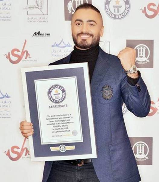 حسمت موسوعة «غينيس» للأرقام القياسية العالمية، الجدل المثار حول تسجيل المغني المصري تامر حسني في موسوعتها كأكثر فنان مؤثر أو ملهم في العالم. وقالت في بيان أصدرته (الإثنين): «استطاع الفنان أن يكسر الرقم القياسي العالمي لأكثر عدد مشاركات على لوحة إعلانات، وفقا لما تم على لوحة تصدرها مارينا مول في أبوظبي، لكنه ليس الفنان الأكثر تأثيرا وإلهاما في العالم كما أشيع».