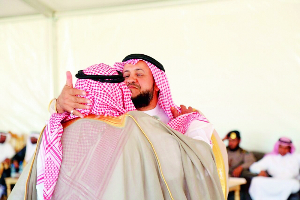 محافظ الكامل يقبل رأس أحد المتبرعين بأرض لإقامة مبنى حكومي في حرة الشرع. (تصوير: فيصل الاذيني)