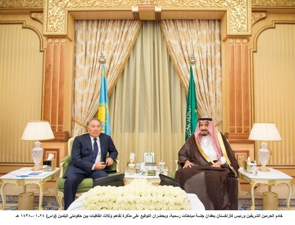 وكان خادم الحرمين الشريفين استقبل في قصر اليمامة أمس رئيس جمهورية كازاخستان.