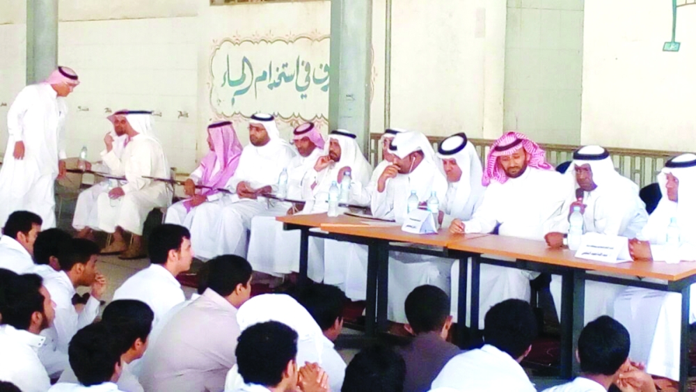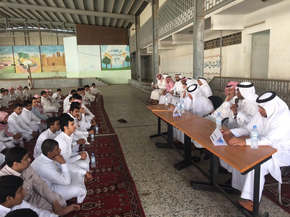 وخاطب مدير التعليم طلاب المدرسة، بحضور«عكاظ» قائلا: «أرى أمامي شبابا هم أمل الوطن ومستقبله وألمس فيكم علو الأخلاق وأدب المتعلم وحسن التربية، وأدعوكم إلى نبذ السلوكيات والتصرفات التي اقترفها البعض».