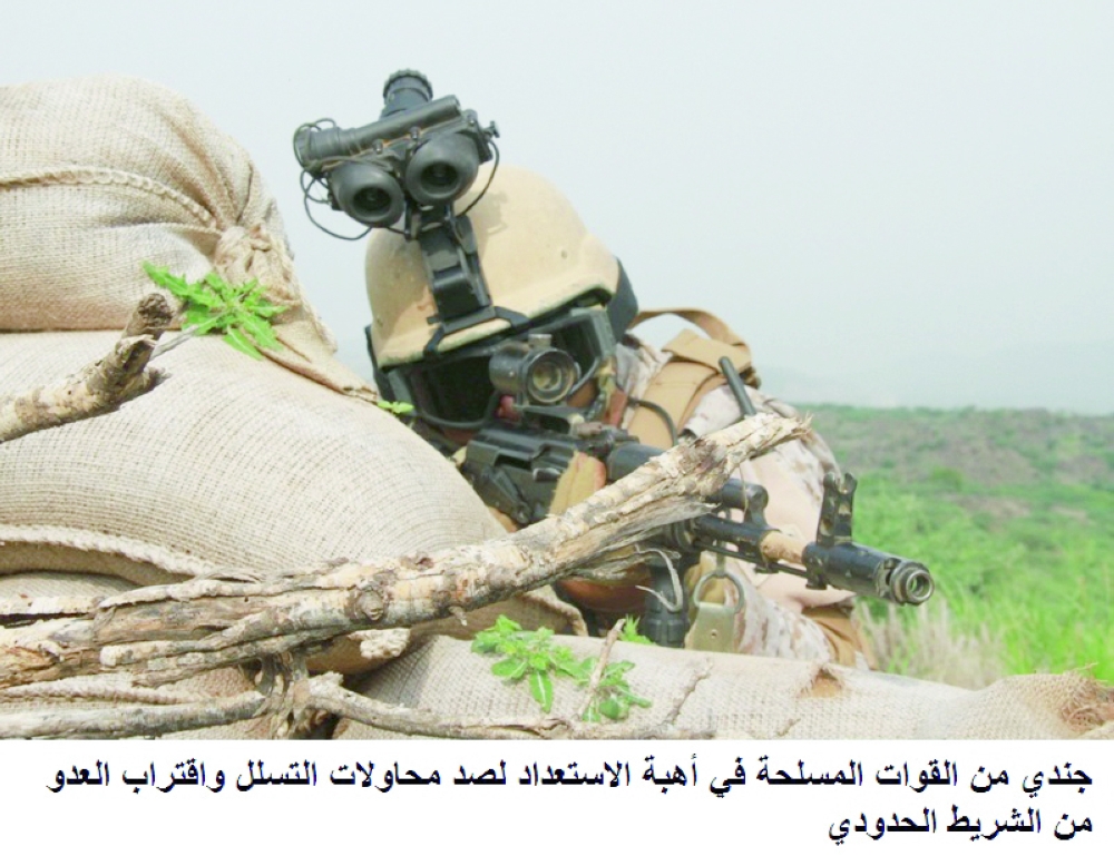في أحد الأيام حمل أحد الأبطال - وهو جندي شاب قناص من أفراد القوات المسلحة - سلاحه ليتمركز على سفح أحد المرتفعات بالخطوط الأمامية المقابلة لليمن، في مهمة لمراقبة أي تحركات من العدو أو محاولة اقتراب من الشريط الحدودي، ليجد نفسه في برهة أمام موقف إما النصر أو الموت وهو يرصد قناصا أراد به شرا. يروي الجندي الشاب تلك اللحظات قائلا: «كنت متمركزا في مرتفع في مهمة رصد ومتابعة للعدو وأثناء مراقبتي من خلال المنظار المجهز به سلاحي وقعت عيناي في لحظة من اللحظات على قناص كان متمركزا في الطرف الآخر مني ومواجها لي تماما، ولم تكن المسافة قريبة إذ تقدر بكيلومترين، وفي اللحظة نفسها أدركت أنه شاهدني وحدد موقعي وأدرك أنني شاهدته جيدا وحددت موقعه، كنت محاطا بمتاريس، وكان مختبئا بين الصخور ولا أشاهد منه سوى طرف السلاح المعد للقنص الذي يحمله، وهو لا يشاهد سوى طرف السلاح الذي أحمله، ويعلم أن هناك أحدا خلف ذلك السلاح ينتظر الفرصة لقنصه».
