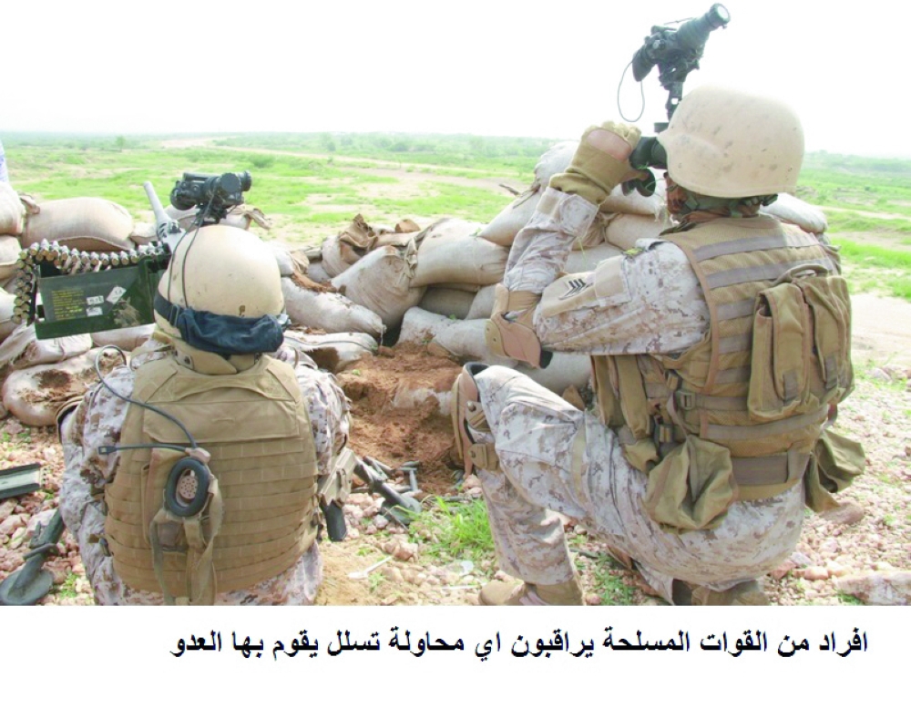 ويضيف الجندي: «فكرت كثيرا في الموقف الذي أنا فيه وفي معنى النصر والتفوق على العدو، فكرت في ثقة القادة وولي الأمر التي وضعوها فينا جميعا نحن المرابطين، فكرت في أشياء كثيرة جعلتني أقرر الصمود والصبر رغم أن هذا الأمر صعب جدا، إذ إن أي إنسان لا يستطيع أن يبقى على الوضع نفسه دون حراك لفترات طويلة، فأنا لا أستطيع تحريك يدي أو ساقي، ما جعلني أصاب بألم قوي وشد في جميع عضلات جسمي، ولكن تحملت كل ما كنت أشعر به وكنت مصمما على تحقيق النصر، وطوال الساعات التي مضت كنت أجد الدعم والتشجيع من بقية زملائي وكان لذلك أثر كبير في نفسي، كل ما كنت أفعله هو النظر من خلال «الدربيل» أو الناظور الذي أحمله فوق سلاحي، ومراقبة العدو، وعلمت بعد ساعات أن العدو في الطرف الأخير متمرس ويفهم قواعد اللعبة ويعلم أن أي حركة تصدر منه تعني مقتله، لذلك أعتمد على الإستراتيجية نفسها التي انتهجتها وهي الصبر وعدم التحرك حتى تحين الفرصة».