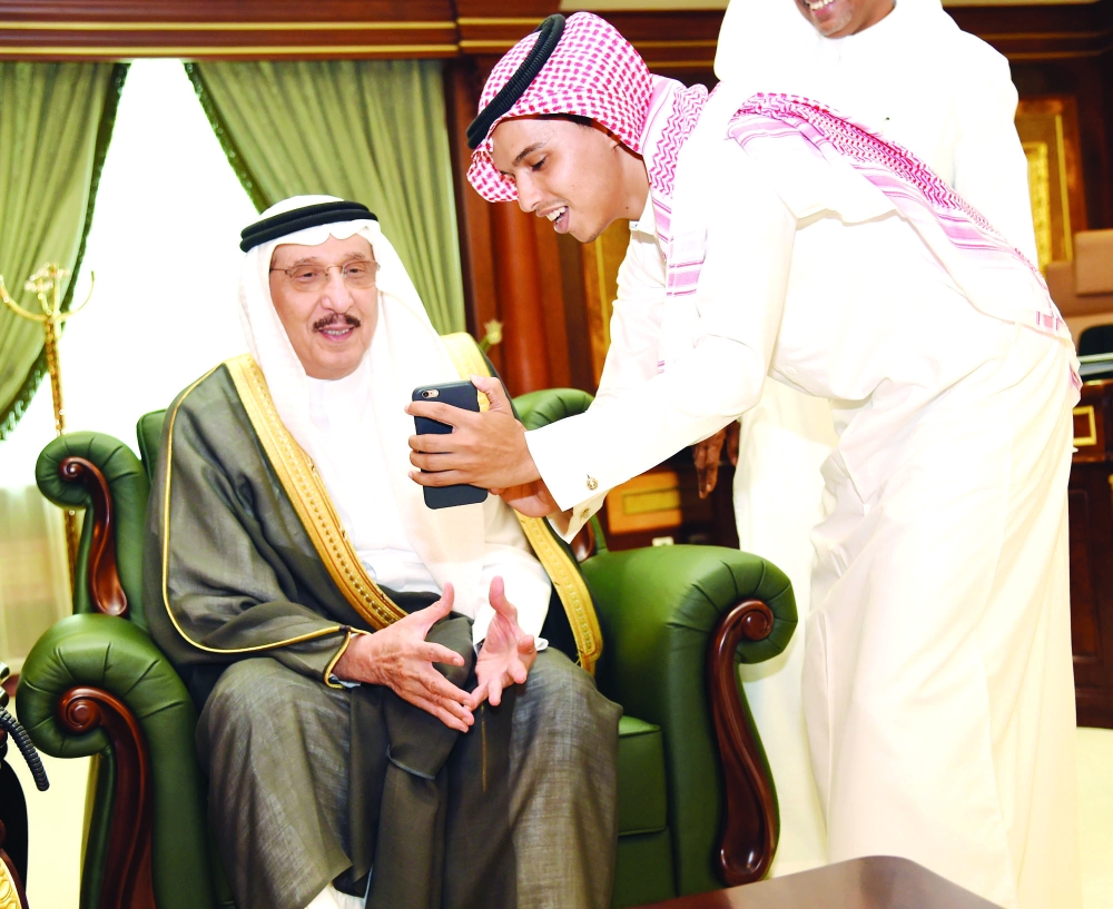 أمير جازان خلال تدشين الحساب الرسمي للمنطقة على «سناب شات». (عكاظ)