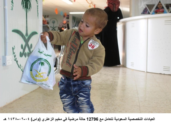 تعاملت العيادات التخصصية السعودية مع 12796 حالة مرضية من اللاجئين السوريين في مخيم الزعتري بالأردن خلال شهر أكتوبر الماضي.