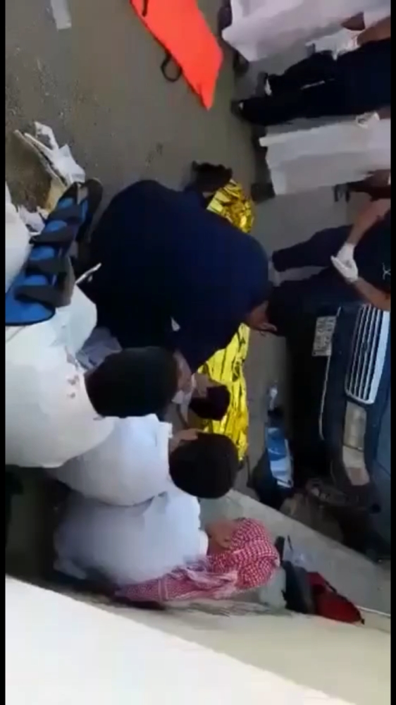 الهلال الأحمر أثناء مباشرته للحادثة أمس، وفي الصورة الطلاب المصابون وزميلهم الراحل.