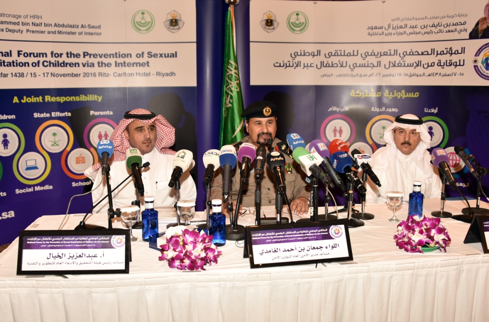 يذكر أن ولي العهد نائب رئيس مجلس الوزراء وزير الداخلية الأمير محمد بن نايف يرعى الثلاثاء القادم الملتقى الوطني للوقاية من الاستغلال الجنسي للأطفال عبر الإنترنت في الرياض، والذي تنظمه مديرية الأمن العام بالتعاون مع عدد من جهات وزارة الداخلية والجهات الحكومية بمشاركة دولية وإقليمية ومحلية، إذ تشارك فيه نحو 12 دولة و15 جهة.