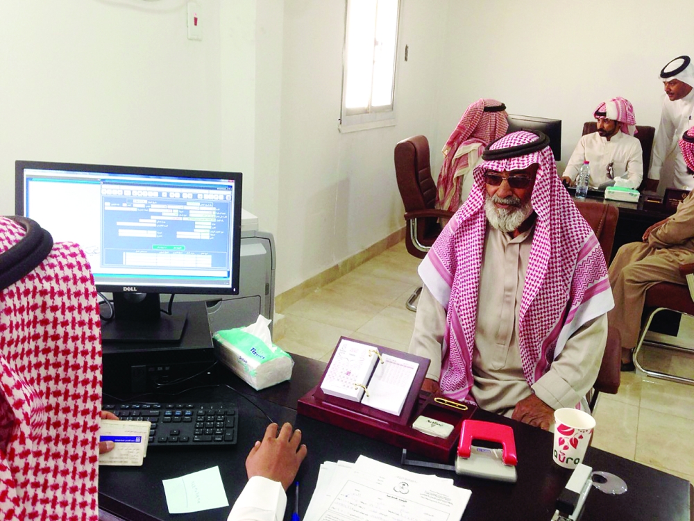 أحد المراجعين في وحدة الضمان الاجتماعي بحقل. (عكاظ)