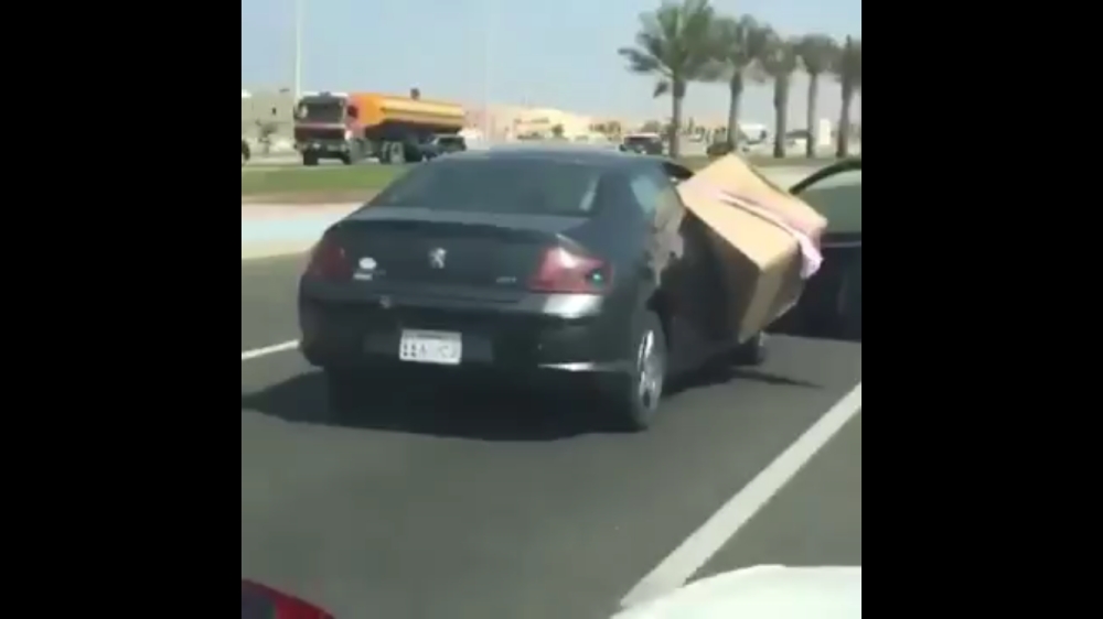 ضبطت إدارة مرور جدة أمس (الأحد) قائد مركبة من نوع بيجو، سعودي (36 عاما)، الذي ظهر في مقطع فيديو انتشر على مواقع التواصل الاجتماعي، وهو يسير على أحد الطرق الرئيسية واضعا صندوقا كرتونيا (حمولة زائدة) بالمقعد الأمامي، دون إغلاق الباب، بعد ربطه بقطعة قماش.
