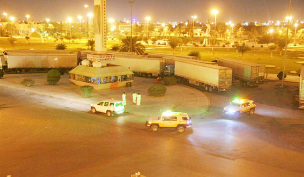 عملية ضبط الشاحنات المحملة باللحوم غير الصالحة. (عكاظ)