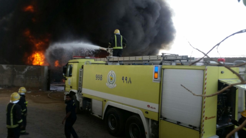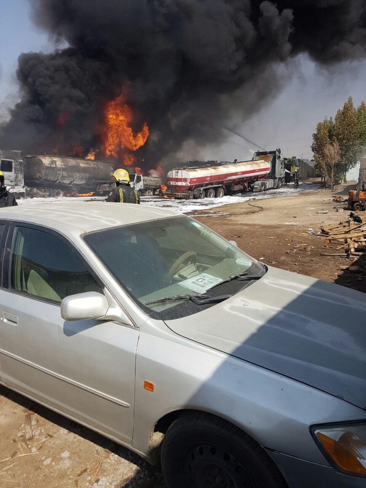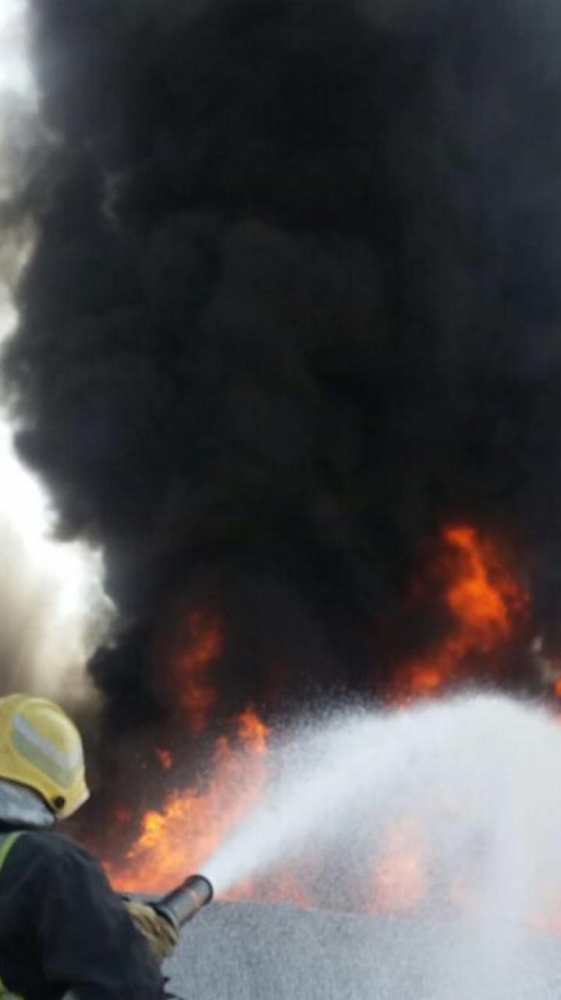 إخماد حريق في (حوش) لتخزين الزيوت المستعملة